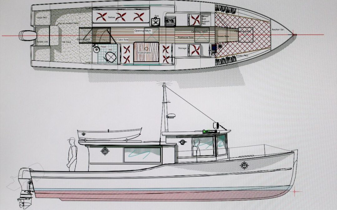 That is the new outboard cruiser for two from Sam’s latest vision. The Island Time 33 is introduced in the March 2021 issue of Passagemaker Magazine that just came out.