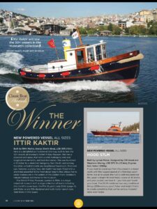 Classic Boat Magazine held it’s 2021 best boat of the year awards in 8 different categories this last Thursday. Ittir Kaktir, a Sam Devlin designed Tugzilla built in Turkey by RMK Marine emerged the winner among 5 formidable competitors.