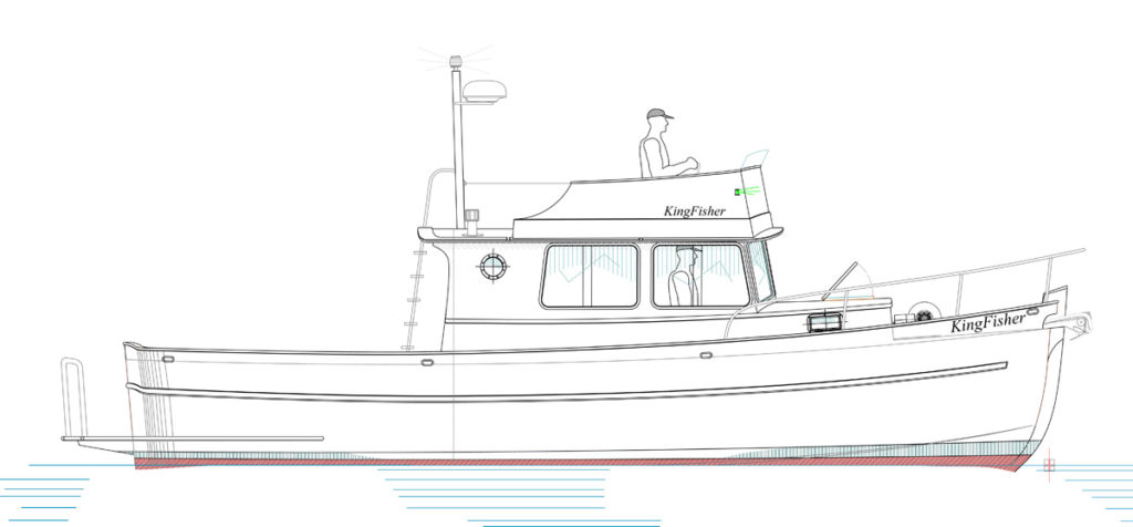 The Kingfisher 33 design became a reality with its launch recently in Olympia. It’s featured on the cover of the November 2017 issue of Passagemaker Magazine and as part of an in depth article on the history of Devlin Boat in the same issue. This is a diesel powered inboard cruising boat with a large cockpit for fishing or hobnobbing with fellow boaters when you’re out and about in the Pacific Northwest waters.