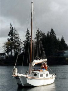 The goal with Lichen 20 was to develop a smaller-sized sailboat (20 feet) able to comfortably cruise the backwaters and bays of the Northwest without excessive concern for draft. This vee-bottomed hull design is an answer to the challenge. The shallow draft can still yield a roomy comfortable interior suited for extended cruising. The Lichen features a retractable centerboard that draws 38″ down and just 17″ up, making shallow water navigation a snap. The shallow water draft combined with the medium light displacement (2500 lbs.) and moderately narrow beam, 7’8″, helps achieve another goal — trailerability.