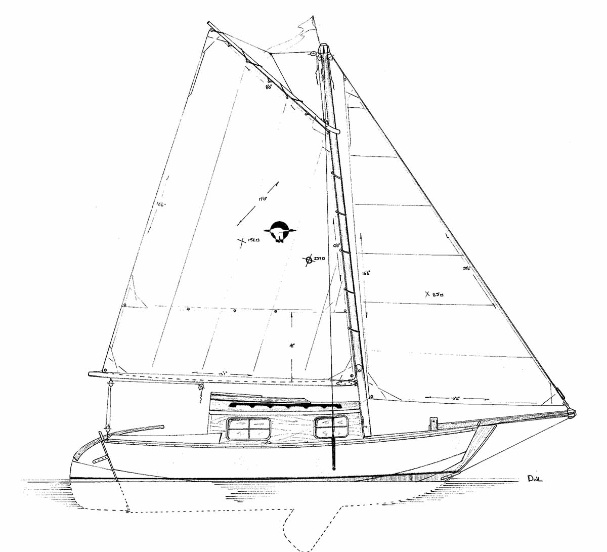 | Sail Area | 237 sq. ft. tabernacle gaff |