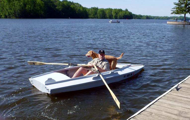 This is an old and venerable design by now with the first design and boat built more than 20 years ago as I write this. She is of the “SneakBox” type of boat with the transom accommodating up to a 15 hp outboard motor, but she also rows or poles very well. In fact, of all the “SneakBox” types of boats that we design and build, the little Mallard is the best at rowing. Now all that good rowing performance does cut down into her top speed under power and if you envision blasting around the duck marsh at something exceeding the frostbite limit of the end of your nose then you would do well to search on to another of our designs. But if you are looking for a very fine little duckboat that will power well under oar and will hunt with you and a buddy in a safe and efficient manner then the “Mallard” is a fine selection.