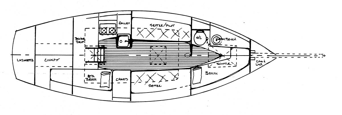 “Cush” was quite taken with the Lyle Hess-designed, Bristol Channel Cutter, and so Means of Grace shares several similar concepts. The footprint is that of a small, heavy displacement boat with a true cutter rig. The interior is similar, and from an inspirational point of view, the Bristol Channel Cutter served as a nice starting place for the design.