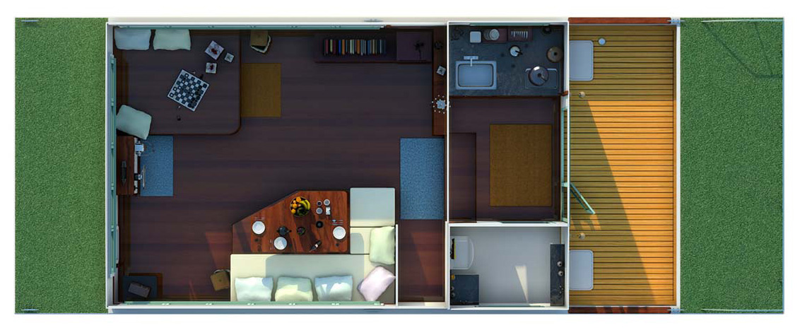 This idea of a “Shanty Boat’ is a beguiling one that holds many hours of musings and dreams in its web; the concept of doing a vessel that is commodious enough to really be comfortable as a live-aboard and one that could be moved from place to place either by water or by land as she is still of a size that a good flatbed trailer could move her about with ease. Imagine all the different adventures that we might have with her, perhaps starting down the Mississippi River, stopping for any length of time in all the interesting spots you discover, anchoring when privacy is desired and stopping periodically at marinas to pick up enough supplies to keep us in food and drinks. With the proper sized outboard, she could actually move-about under her own power enough to justify the expense and mess of rigging a control station. But a real salt would match her with a small tug (something like one of our Godzilla 22 or 25ft. models) and tow her about, using the tug like the car/pickup that all conventional landlocked campers have. Anchor in some secluded little bight in the waterway and use the tug to go to town re-stocking the larder or perhaps just for a break and a meal. Return to the mother ship and you’ve got your home intact and waiting patiently for you.