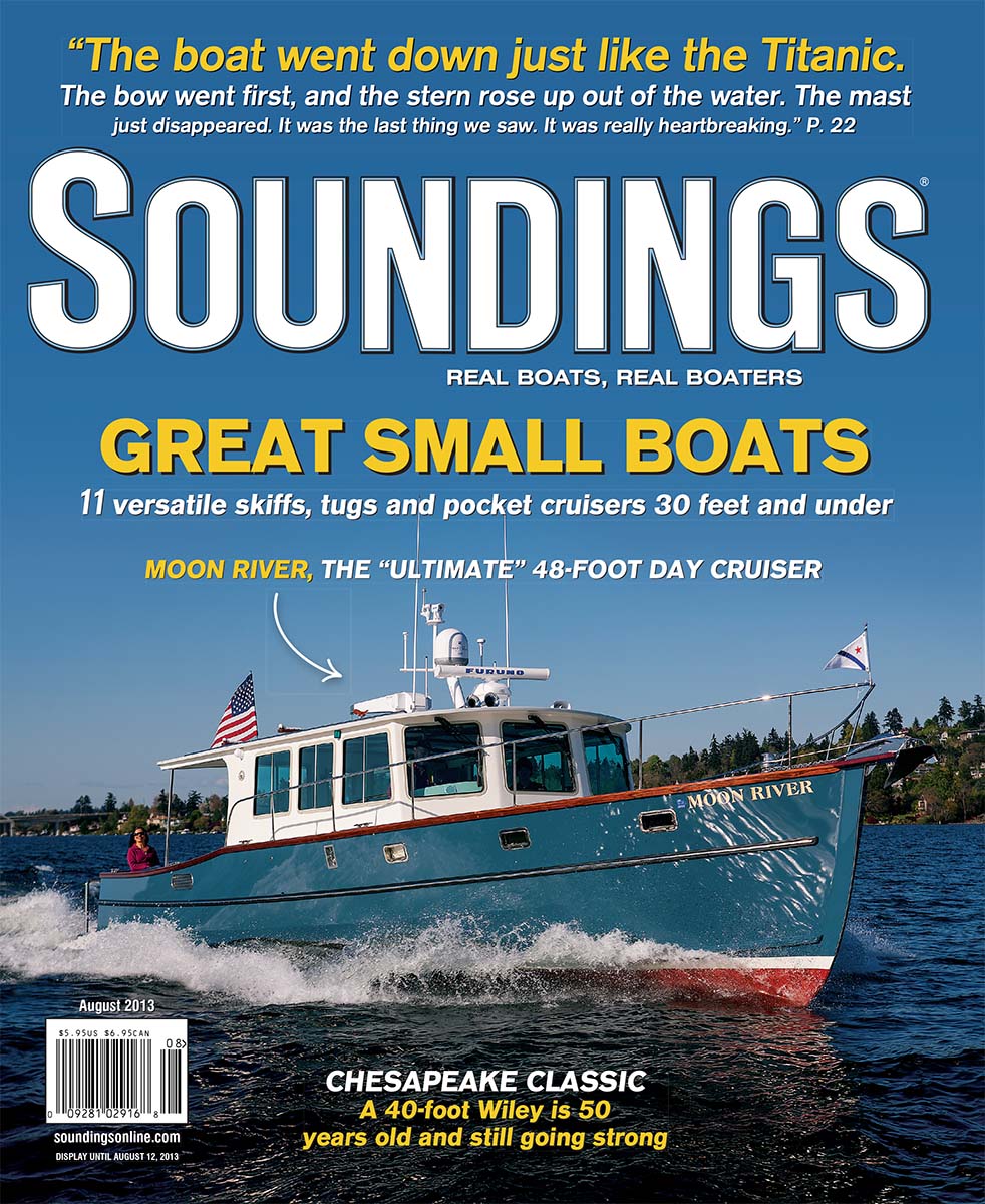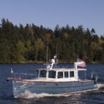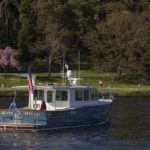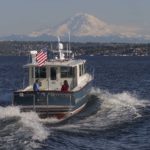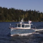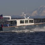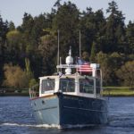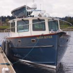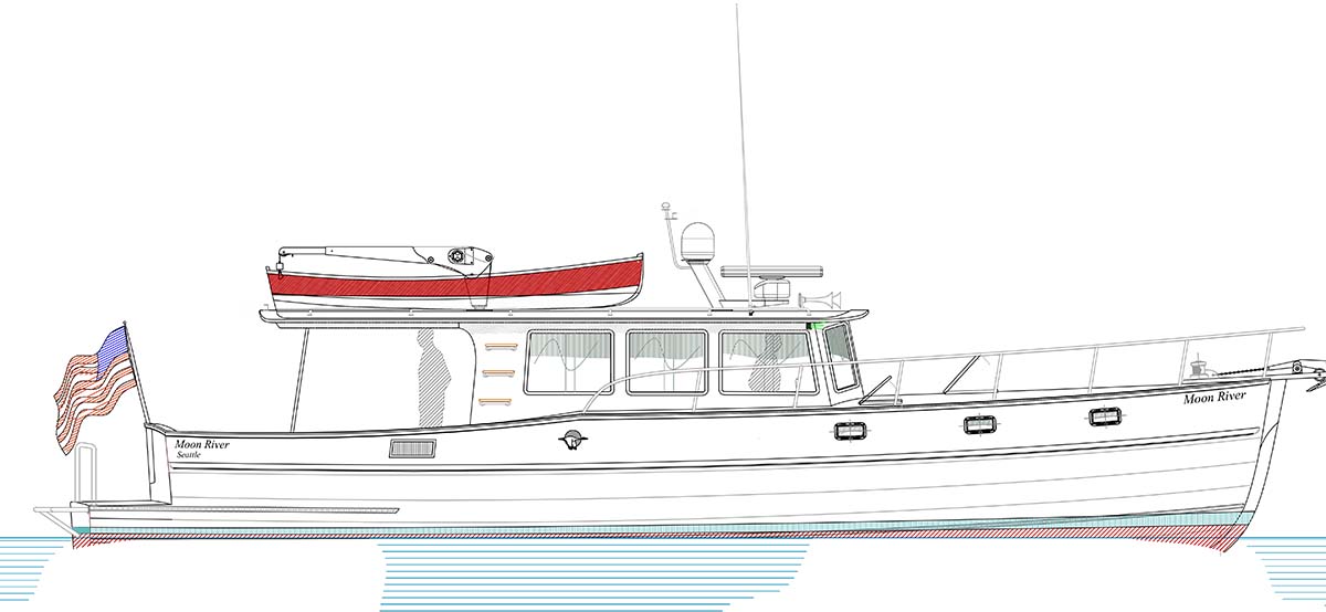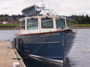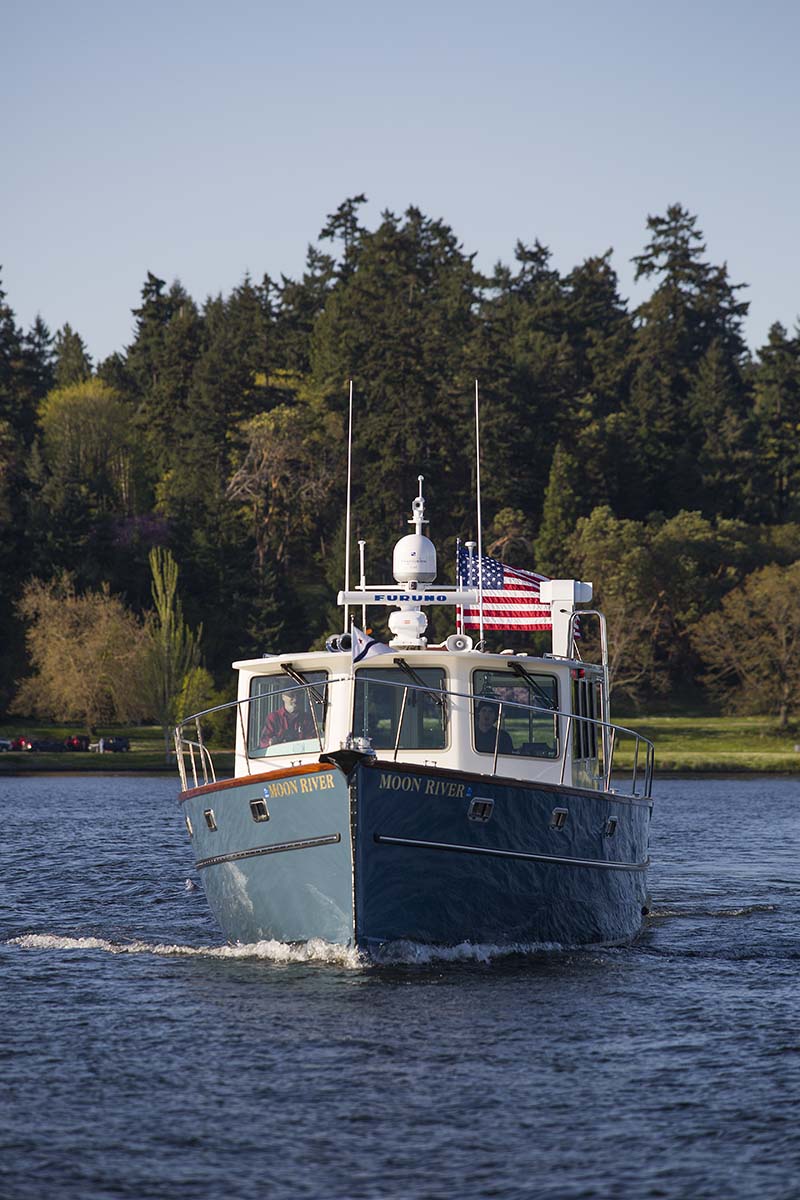 I am happy to report the launching and sea-trials are completed on the newest of the Devlin fleet — the “Moon River 48” and she is living up to all our expectations and dreams. She runs thru the water with an amazing grace, cutting thru the waves like there is nothing in her way. She is smooth and powerful on the water and with her twin John Deere engines purring away quietly in the cockpit, there is an almost dreamlike quality to her motion thru the water.