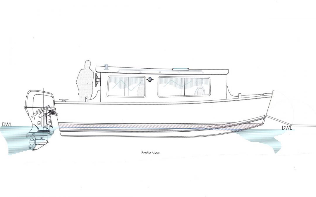 Length Overall : 21′ – 10.5″ — 6.68 m Beam: 8′ – 2.75″ — 2.51 m Draft: 10.75″ — 2.51 m Draft O.B. down: 2′ – 3″ — 0.69 m Displacement: 3300 lbs. — 1496kg