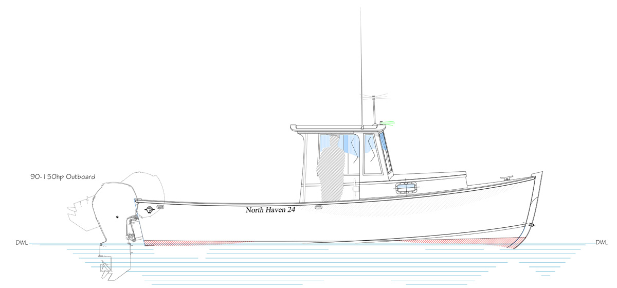 The North Haven 24 is based on one of my older designs, a fishing boat called Sea Chaser. A longtime friend and collaborator of mine in Maine had always liked that hull and saw in it the makings of what’s known in the trade as a “pocket lobster boat.”
