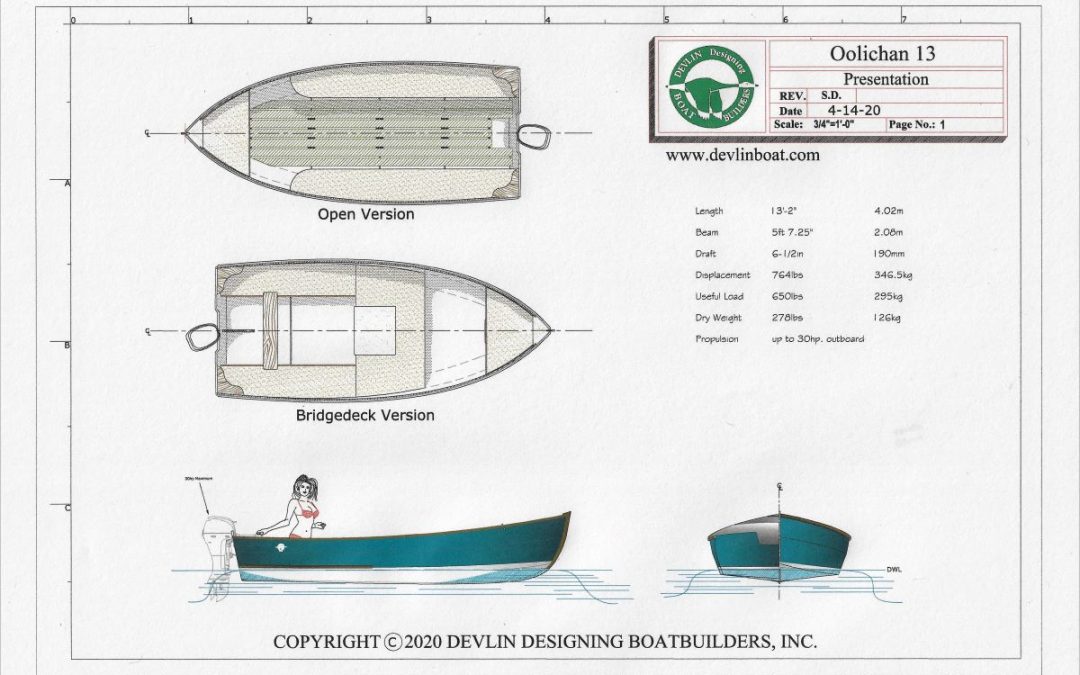 It would be very difficult to imagine a more capable and versatile skiff, enjoy my latest design the Oolichan 13.