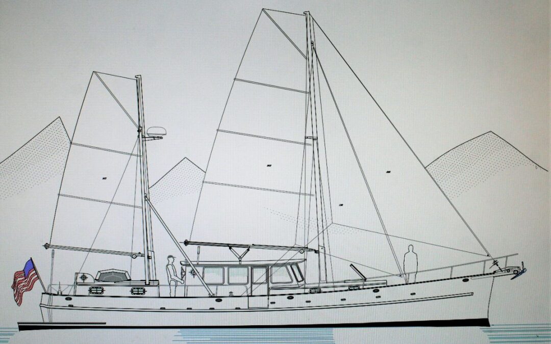 Sam has long been mesmerized by the photographic beauty of Greenland. Two years ago he treated himself to a high quality camera and a chartered boat to trip her shores. His creative juices were fired up after experiencing Greenland’s beauty first-hand and he thought “could I design a boat that could get me from the shores of Olympia, Washington to the Greenland coast?” Oso Blanco (literally “white bear” in Spanish} became the result. A 54 foot motorsailor that could provide a small footprint on the water with its long and narrow design. There would be a gunnel to gunnel master’s cabin aft, a generous bridgedeck in the center, and crews quarters forward. The sailing rig would help steady the boat and increase the range with both sails and engine working together. It would be a sturdy and sea-kindly vessel providing a wonderful platform from which to photograph and study the arctic shores and wildlife.