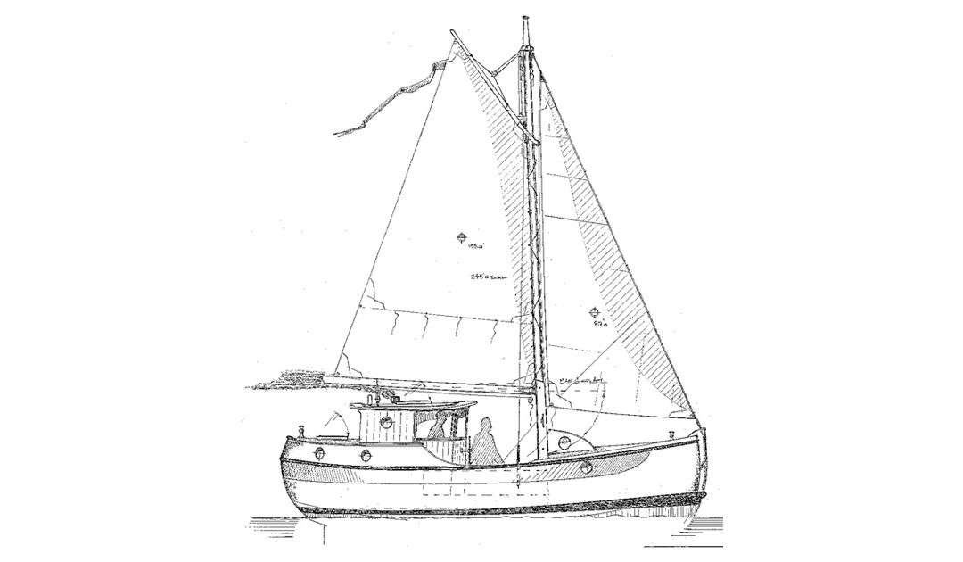Years ago we had a customer who wanted us to build the hull for Sam’s Oysta 25 idea. He really liked the idea of a double ended and short North Sea fishing boat styled motorsailor. The build disappeared off our radar and we hope it’s alive and well somewhere today. This is one ultra-seaworthy and compact little cruiser.