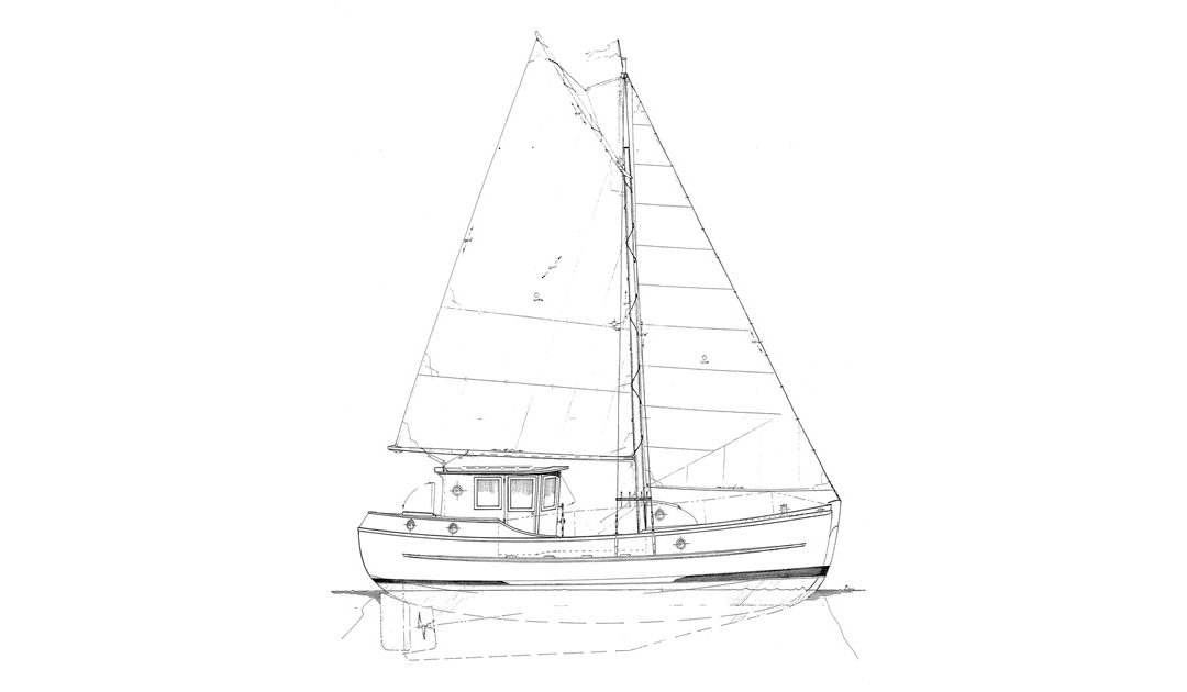 Sam has always loved this style boat. In fact his love of the double ended Norwegian fishing troller resulted in his Oysta 28 motorsailor cruiser. We hoped it would lead to full construction plans someday, but for now that’s on hold.