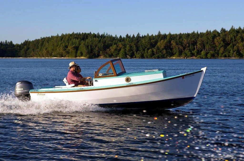 Sam Devlin has a reputation for designing really eye-catching “character” boats. Perish the thought, but I’ve even heard them described as “cute”. Because of that, they are often underrated for their utility, sensibility, durability and performance. The Pelicano is a really excellent example of a comfortable, practical medium-sized skiff that really looks spectacular. The Devlin Pelicano is a versatile and useful real-world design because Sam has designed three separate “flavors” on the basic fast, comfortable and rugged Pelicano hullform.