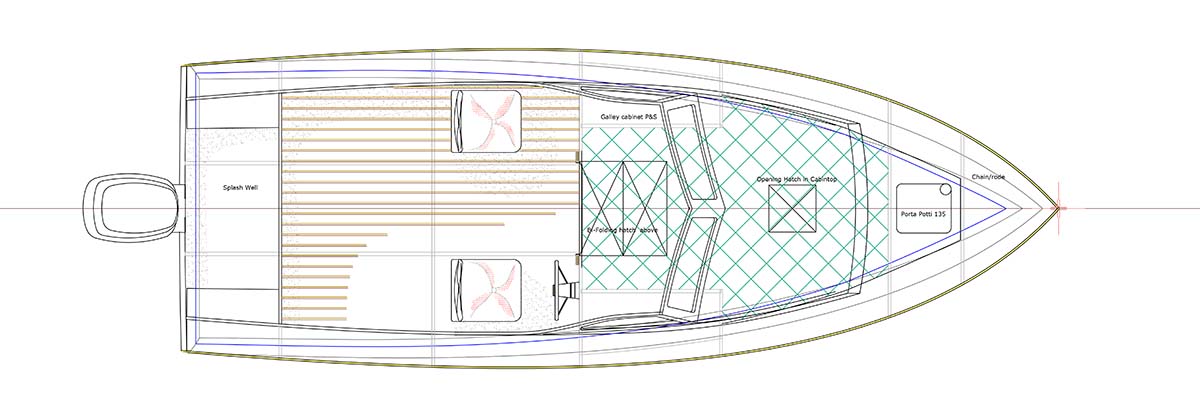 The Pelicano Bassboat is an excellent choice for anyone who wants to maximize usability in a 20′-2″cruiser. It’s a traditional speedboat, a fishing boat, and versatile explorer for weekends on the water. The design has a spacious cabin forward, with enough space for a v-berth for the occasional camping weekend. The design has ample dry storage below.
