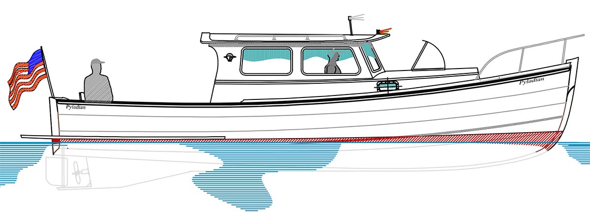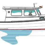 Her overall size was limited to 30ft-6in on deck in order to fit her slip where she will be kept in Sydney and a bow thruster was added to couple with the single engine and give the owner greater control in a tight docking situation. A single seat was added across the stern of the boat for passengers on those nice sunny days but the rest of the cockpit was kept as open as possible to carry gear and stores. The final change was to slightly contemporize her appearance with a three pane forward windshield and twin sliding windows on each of her cabin sides. She is certainly no traditional appearing lobsterboat like the Storm Petrel was but I really have to say that I like the profile of this new “Pyladian” very much and look forward to seeing how her presence manifests itself on the water. Launching is expected in the late fall of 2013. – Sam Devlin