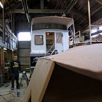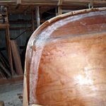 Many months later, both John and his wife were present for a quiet and solemn launch ceremony. Just moments after touching the water however, the engine was throttled up and she roared off over the bay. All of us were pleased with the speed and her presence on the water and it’s really quite hard to imagine a larger little boat design that might exist. She has an interior that has two bunks, the proverbial porta-potti, a galley complete with pressure water, wood stove for interior heat, hanging locker, and lots of sitting headspace. She is really quite the little cruiser and offers her owners the pleasure of getting somewhere in a short amount of time and once the hook is firmly set on the bottom, a calm and comfortable evening lounging in either the cockpit or in the cabin.