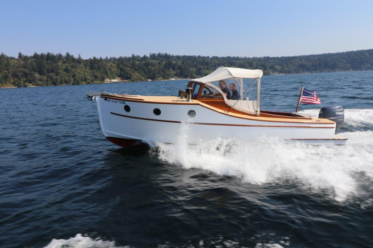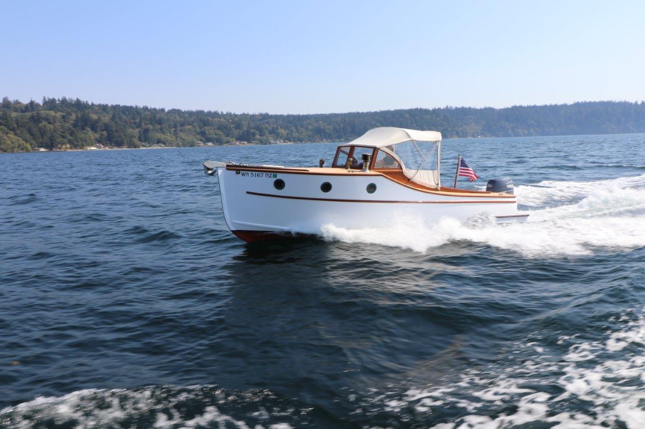 Her speed with a Yamaha 90hp outboard topped out at 27mph and cruising at a comfortable 18-20mph. For our South Puget Sound waters, she is ideal for poking in an out of all the small coves and sheltered anchorages.