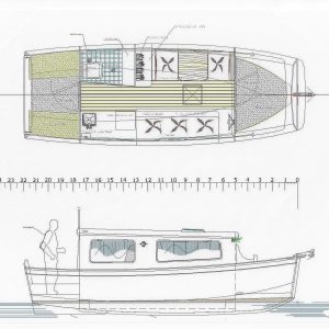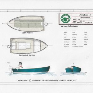Plans come in two basic flavors: Study Plans and Construction Plans. Study plans are inexpensive and give you the opportunity to examine a detailed scale drawing of the design. Construction plans are vastly detailed and can lead you through the entire build of a boat. The price varies with the complexity of the design. There are boats that exist as study plans only, and the reason is that the development of a full set of construction plans can take hundreds of hours. If you see a boat that you would like to see developed, be sure to talk to Sam.