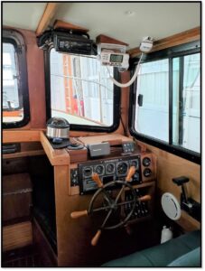 “Tuffy” is a Black Crown 25 built in 1988 and an Alaska veteran a few times over. Salty, trailerable, and comfortable – she’s the perfect boat for the solo cruiser or a young couple. At 25 feet Tuffy offers a head forward between the very comfortable v-berths. Forward also is a great pop-up table for two. Moving into the lounge you’ll find comfortable leather seating for the Captain and the Navigator. Behind the Captain’s seat is a compact galley and opposite is comfortable seating for the crew when you’re at anchor or sitting down with a guest or two. The cockpit has a Yanmar 66HP diesel engine against the cabin bulkhead and enough room for fishing or just hanging out.
