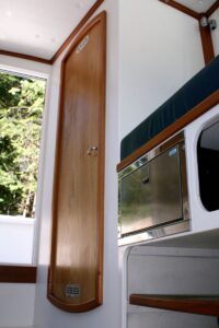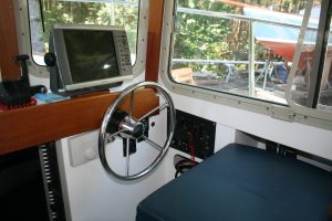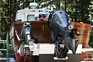 Prize was created by her owners and Sam Devlin prior to and as a precursor to the variety of “trailerable” trawlers that hit the market in 2005/6. The owners liked the Surf Scoter 26 design and while Sam’s shop was fully engaged with a 45’ trawler build at the time, they went to Legendary Yachts (www.legendaryyachts.com), a highly competent wooden boat builder in Washougal, WA. They got together to create Prize with Sam consulting on the project. And just last year (2023) she received a brand new 200 HP Yamaha outboard motor and a brand new 8HP Yamaha kicker outboard. All work was done here at Devlin Boat.