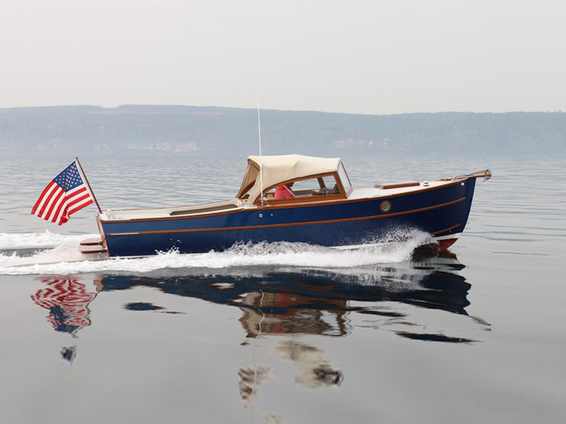 The Surf Runner 25 combines the classic looks from another time with modern performance and reliability. She looks like an open runabout from the outside, but manages to sneak some very usable cabin space into the bow area.