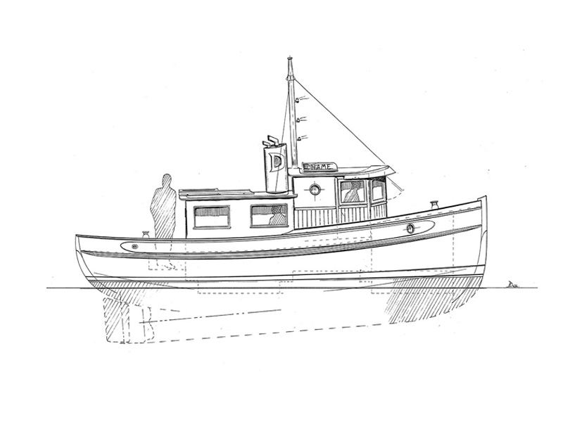 The Kingfisher 26 is smallest of Devlin’s series of double-ended workboat style cruisers. She’ll take 3 passengers just about anywhere.
