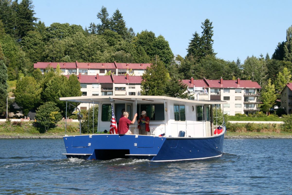 Since the Port Townsend Wooden Boat Festival last September and the ensuing feature video from Off Center Harbor, we’ve had many requests for study plans of the build. Here they are. She is an all electric 40 foot home on a catamaran base. The first one has traveled 1,500 miles in Pacific Northwest waters without every needing shore power to charge her batteries!