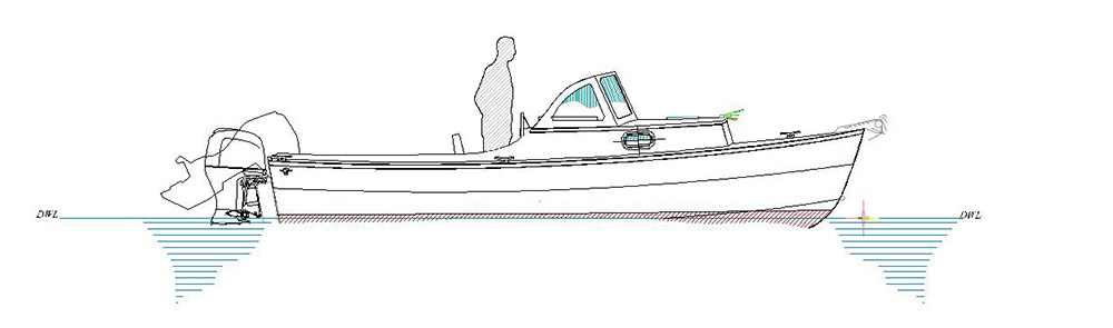 The original plan was to fit the boat with a 70 or 90-HP outboard, but when we noticed that the 115-HP Merc weighed the same as the 70 and 90-HP models we decided to go big. The boat certainly doesn’t need this much power, but what I like is that she cruises at 20-mph quietly and effortlessly at a mere 3500-RPM – full throttle is 6000 RPM.