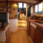 The galley is U shaped and allows good room and space for cooking and preparing meals, with good communication to the settee opposite and wood stove for heating your feet on a cool day.