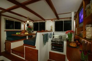 This Devlin Sockeye is 45 feet of handcrafted excellence. She gives you a quiet, smooth running and economical John Deere diesel housed in a sound-proofed engine room. A tough epoxy/wood construction makes her a sturdy and safe home for long distance travel on the water. She is ready to go and fully equipped for your cruising dreams.