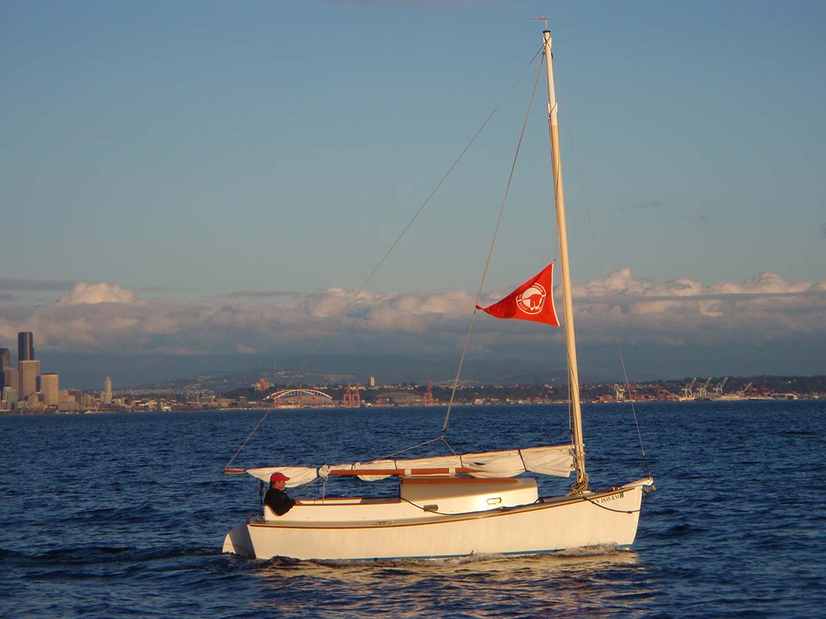 Sailing a boat like the Wompus Cat is simplicity itself. She has just a single mainsheet and tiller to tend, yet with her wide beam she is capable of sailing fast and flat. Her generous cockpit offers plenty of room to bring friends without getting in each other’s way. In the cabin, there is plenty of room for comfortable and livable space, which is quite a trick in boat this size. The Wompus Cat is trailerable, and her draft allows her into shallower waters in your explorations. It’s hard to find an easier path to a full featured sailboat.