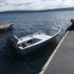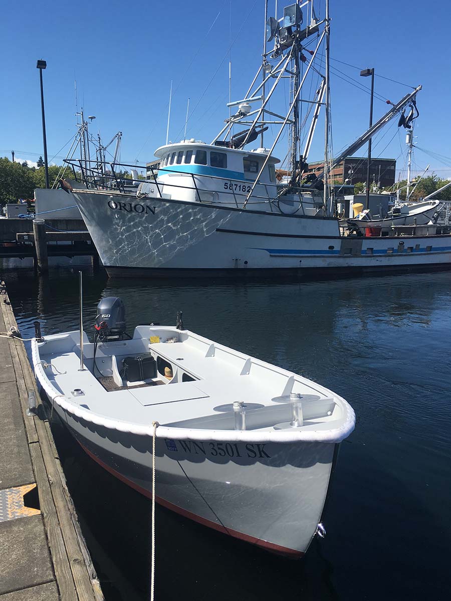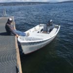 Sam, in a word, ‘Stanley’ is perfect!” I know there is no boat which is actually perfect, but for my intended use, ‘Stanley’ couldn’t be better! It rides solid and smooth. Both of us could stand at the rail on one side and the boat barely heeled over at all. That’s great for crabbing out of a small boat. It quiet and has a solid sound and feel to it. I couldn’t open the engine up beyond half way, as it’s still in break in mode. But half throttle was plenty and perfect for fast cruising.