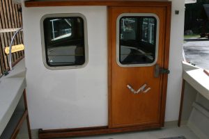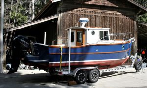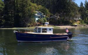 This Surf Scoter 22 built in 1992 received a major refit in 2016 here at Devlin Boat. Complete exterior paint was redone and most importantly a Mercury outboard and electronics package was added. We created a new outboard mount with swim steps on either side. Dogged comes with radar, all outboard motor running statistics on your GPS screen, compact galley, sleeping for 2 forward along with a table when needed, a large cockpit, and a new trailer was added at the time of the refit Give Sam a call – 360-402-9824.