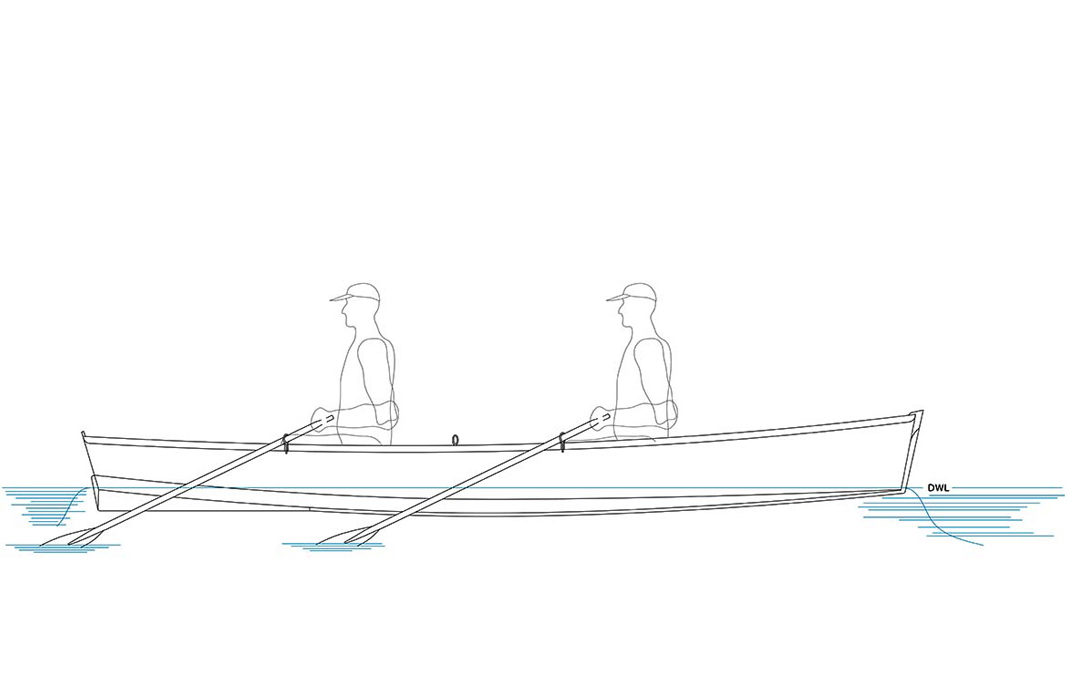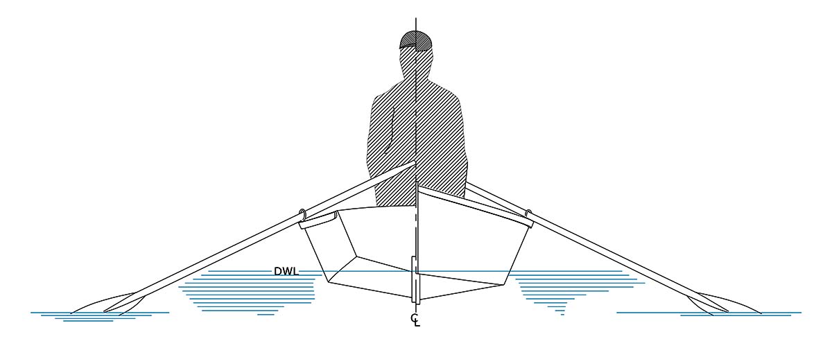 The Bella 16 rounds out our three-strong series of pulling/motoring skiffs. This largest version could easily carry three passengers, or even more if motoring instead of rowing. With only four 4 x 8 sheets of ¼ inch plywood and a few other odds and ends, the boatbuilder can have an attractive, easily driven, light craft. This boat is built upright without a jig, saving on time and materials. As with the Bella 10 and Bella 12, this boat is primarily a rowing skiff and her shape suits that purpose nicely. Whether fishing a pond in Wisconsin, rowing for recreation on the Puget Sound, or pulling her up on a Florida beach for some camping, the Bella 16 is a handy skiff. In a world that needs more boats, I’m happy to offer plans for the boater whose needs are balanced equally by aesthetics and utility. — Sam Devlin