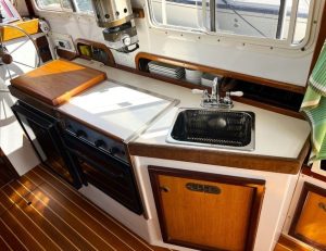 Since her initial launching in 1993 the current owners added: a new hot water heater and new inverter/charger. DC lights have been replaced with new LED fixtures , AC outlets changed to GFI and all navigational instruments have been replaced- GPS, radar, VHF radio, etc. Her specs are all below.