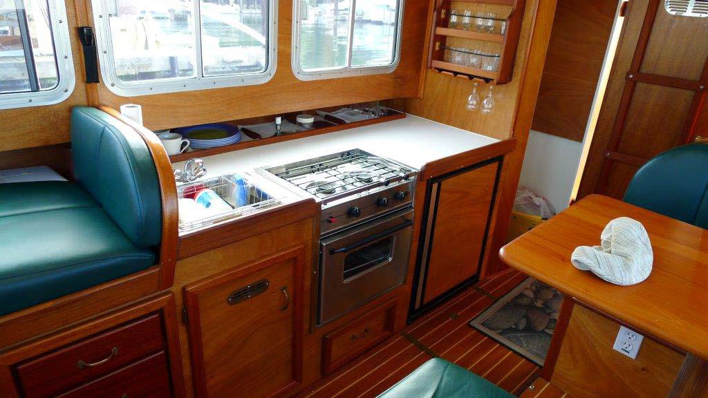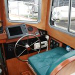 On the port side of the boat and opposite the helm is a side facing co-helm seat that works well for keeping an extra pair of eyes scanning forward while the boat is running but also allowing good conversation with the skipper. Forward of the main salon area is a large double berth that can be built with either a queen sized double slightly to starboard side or a port and starboard single berth that with a filler can be converted to a huge double berth running the full length of the bow and full width of the forward cabin (this is my own personal favorite arrangement). There is 6-5 headroom in the main salon cabin and good seating and sleeping headroom forward in the bow area.
