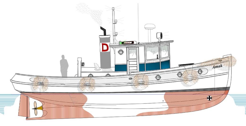The Amak Tugboats are a series of concept designs, born of a lifelong love of the tugboat form, and they are just waiting for an excuse to be developed. They range in size from 26 to 44 feet. If a tugboat calls to you, there's an Amak to do the job.