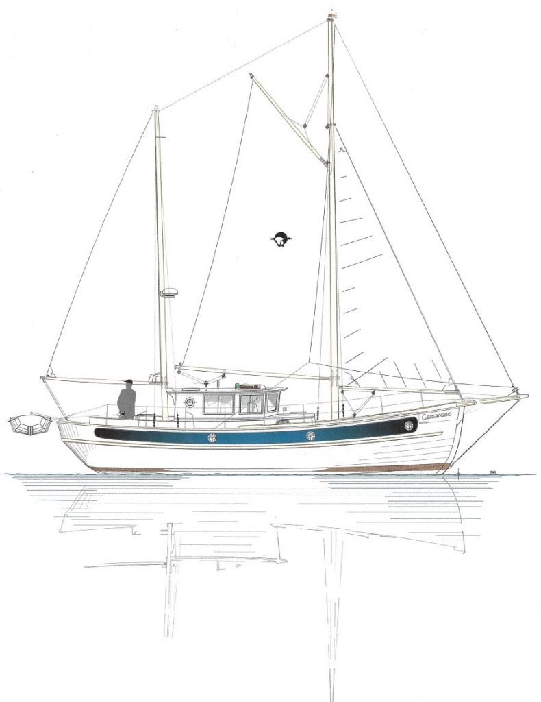 The Camarone 34 is a motorsailer for extended cruising and spacious accommodations, designed to operate equally well under sail and diesel power.