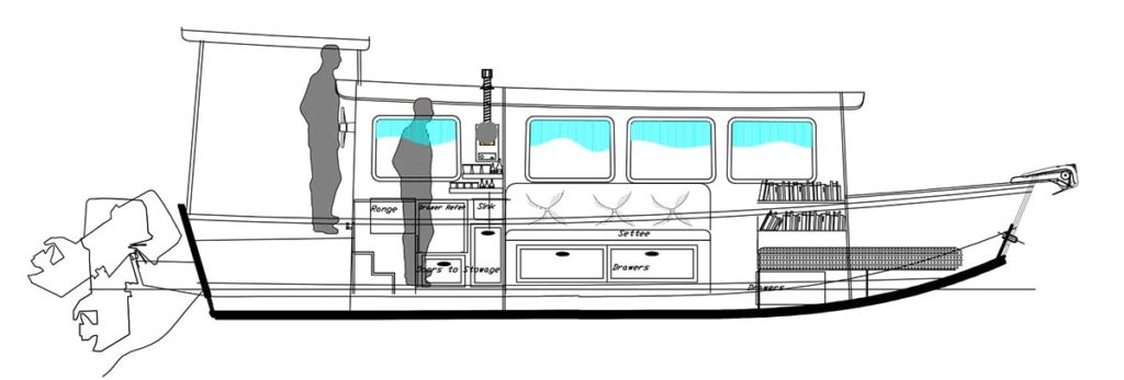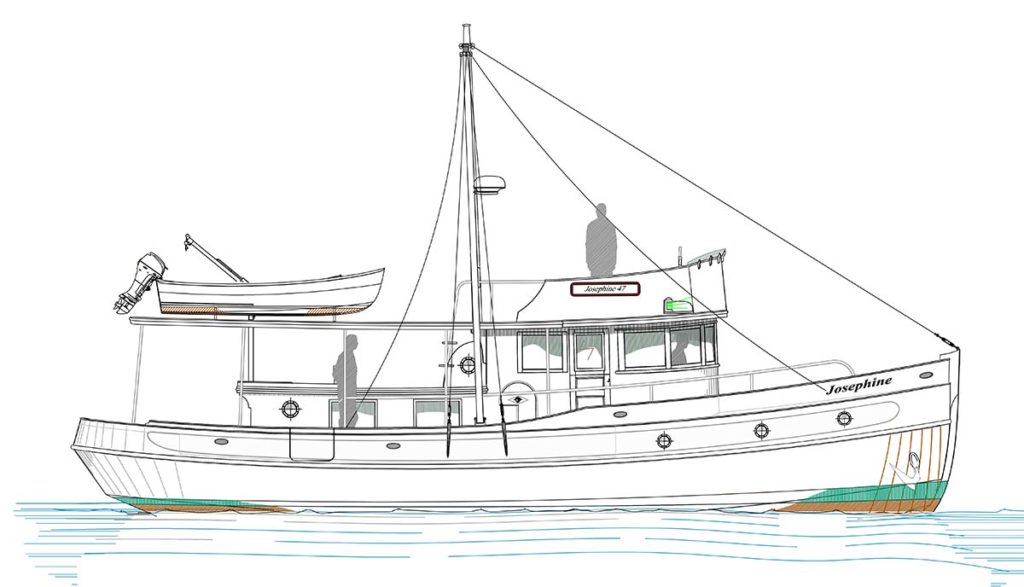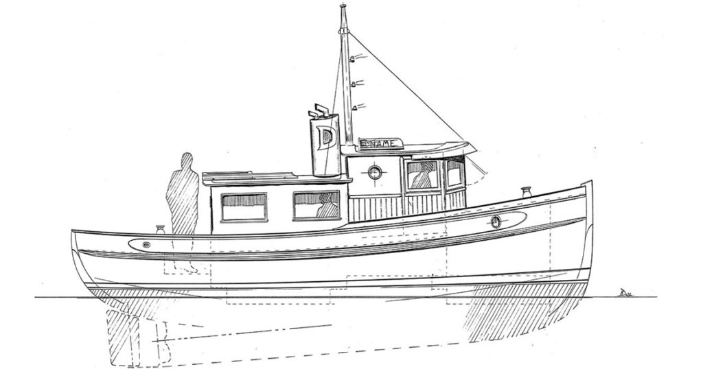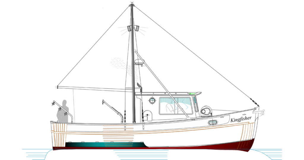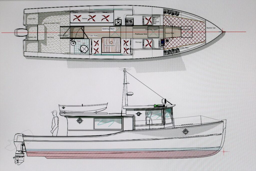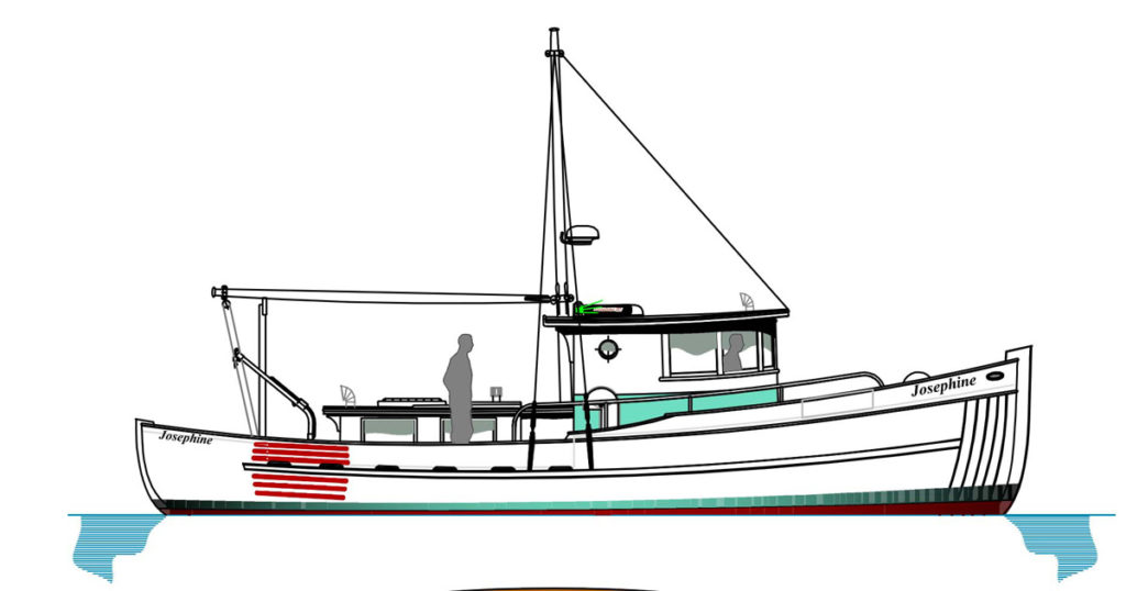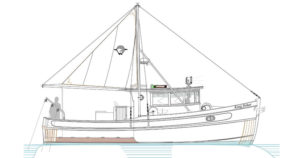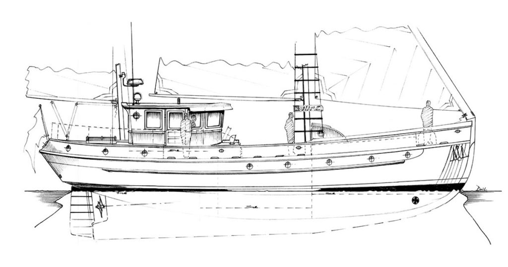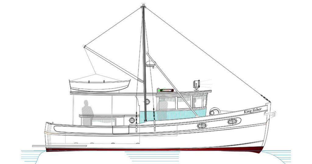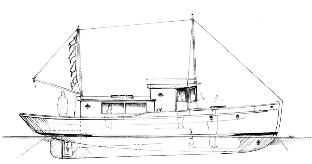 Sam has always loved this style boat.  In fact his love of the double ended Norwegian fishing troller resulted in his Oysta 28 motorsailor cruiser.  We hoped it would lead to full construction plans someday, but for now that’s on hold.
