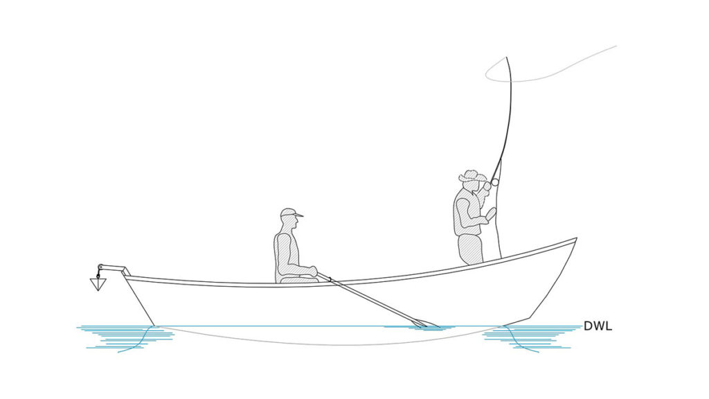 Sleek lines and a beautiful sheer make the Oarling a delight to row and own. She is light, responsive and easily maneuvered, providing great transportation for the single oarsman or with passengers and cargo.