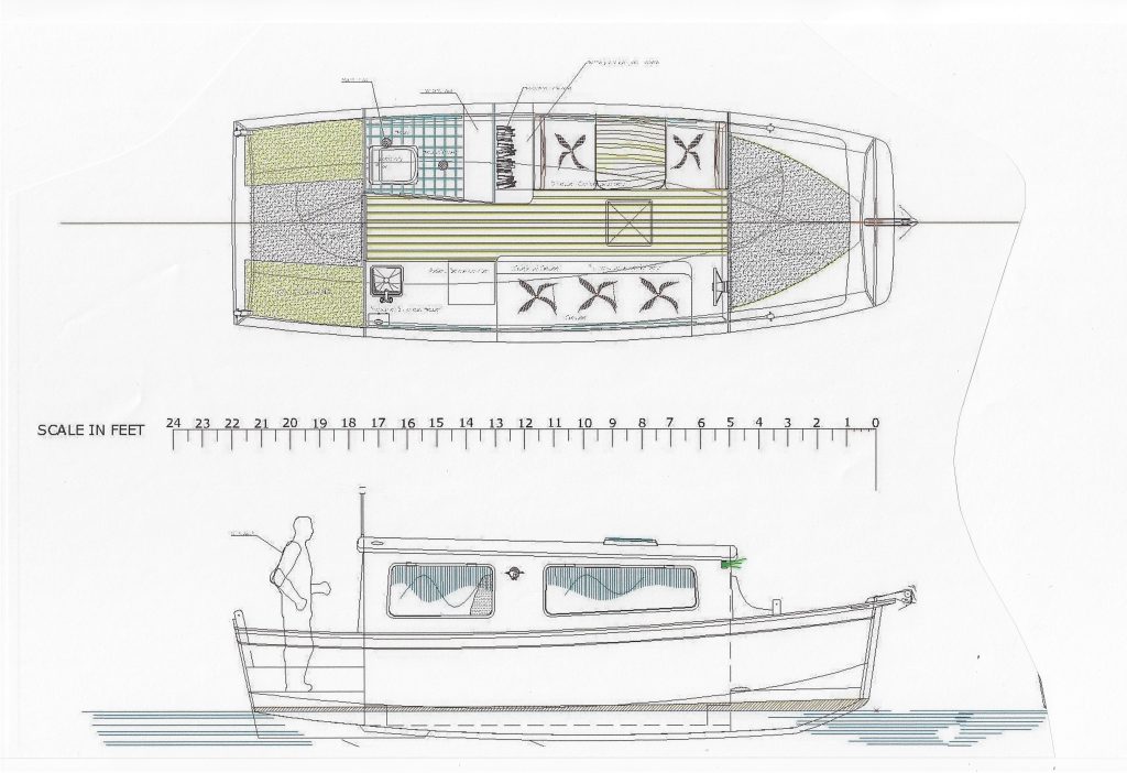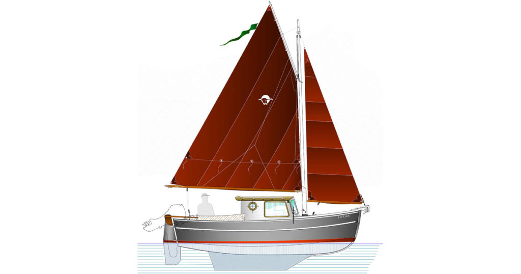 The Curlew 24 is one of Sam's last hand drawn concept designs, squarely aimed at the goals of comfortable and stable cruising.