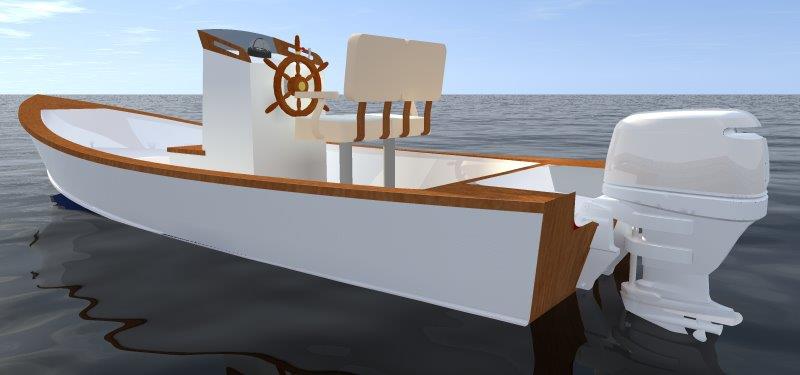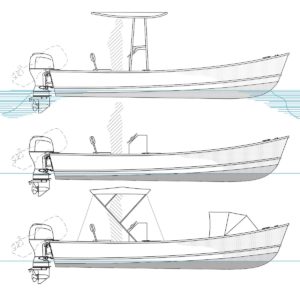 This is a new design done as a very simple and approachable powerboat capable of being the perfect companion to adventures on the water. Originally designed for Florida waters, I think she would fit in just about anywhere. Built as an open boat, a variety of other concepts and options can be worked into this relatively simple hull, all of them allowing the builder and boatman to tailor this vessel to suit their own needs and desires. She is on the narrow side being very similar to the Pangas of Mexico and the Caribbean that I am very familiar with. As a fishing boat on the bonefish flats, she really shines with a casting deck built into the forward area of the boat where you have plenty of room to keep your feet under you while standing up to cast into the clear waters.