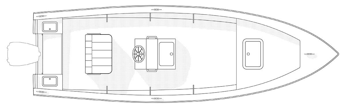 Power can be up to a 90 horsepower outboard but keep in mind this hull does not need a lot of horsepower to be driven economically at a good clip over the water. There is a center console arrangement that helps keep the helmsman in an area of the boat with excellent visibility and control.