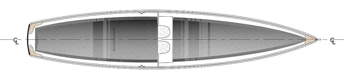 Sleek lines and a beautiful sheer make the Duckling a delight to row and own. She is light and responsive and easily handled, providing great exercise for the single oarsman. As a three-panel per side design, she’ll glide through the water nearly effortlessly.
