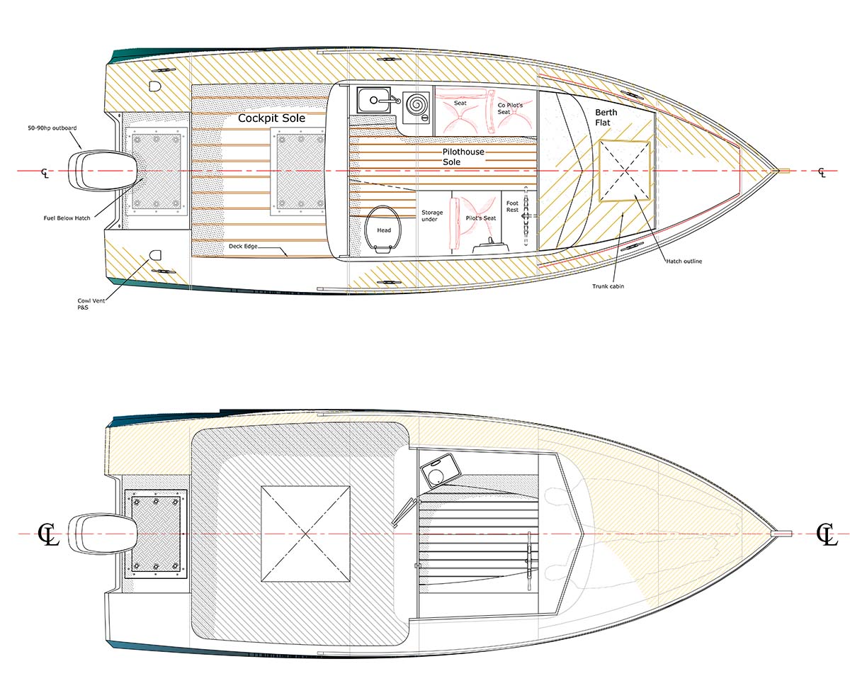 The Dunlin 22 Pilothouse version is available in study and full construction plans. And don’t forget to take a look at the Dunlin 22 Cruiser version study and construction plans.