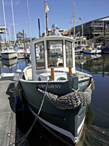 For her engine the “Godzilla” has a used, but rebuilt, Sabb (not related to the car and aircraft manufacturer Saab) diesel engine, a big, single cylinder beast with a large heavy flywheel that makes a reassuring chunk-chunk-chunk noise when she is running. These little engines are made in Norway and find themselves into the most interesting boats, almost all of them as eccentric as the engines themselves. They don’t use a normal reduction gear with forward and reverse shifting but instead, have a feathering propeller that, with a lever, moves the blades of the propeller back and forth and with rotation all the same direction, gives you forward, reverse or stationary all without a clutch shifting. Getting used to this kind of an engine and drive takes a couple of hours but in time becomes second nature with its capability of going from forward to standstill to reverse all without changing the rpm and all uncannily calm and smooth. The boat needs to be literally built around such an engine and much of the installation is unlike your normal Yanmar or other such small diesel. With the Sabb engine, she runs out at a top speed of almost 6 knots with a flat and very unnoticeable wake (this is a good type of boat for running around marinas or places that have a restricted wake zone). Top rpm on the Sabb is 1800 rpm and she seems happy at almost any revs including the 300 rpm idle.