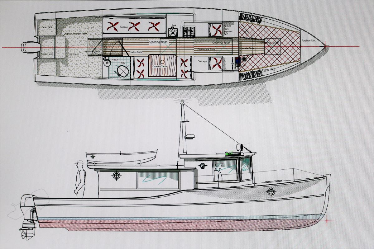 What is it? Get ready to welcome a solar electric 'Shanty' boat type with low horsepower that is beachable, has full headroom, a large head, and opening windows. Available today - a one page study plan with an accommodation view, an exterior profile, and a stern/bow view.